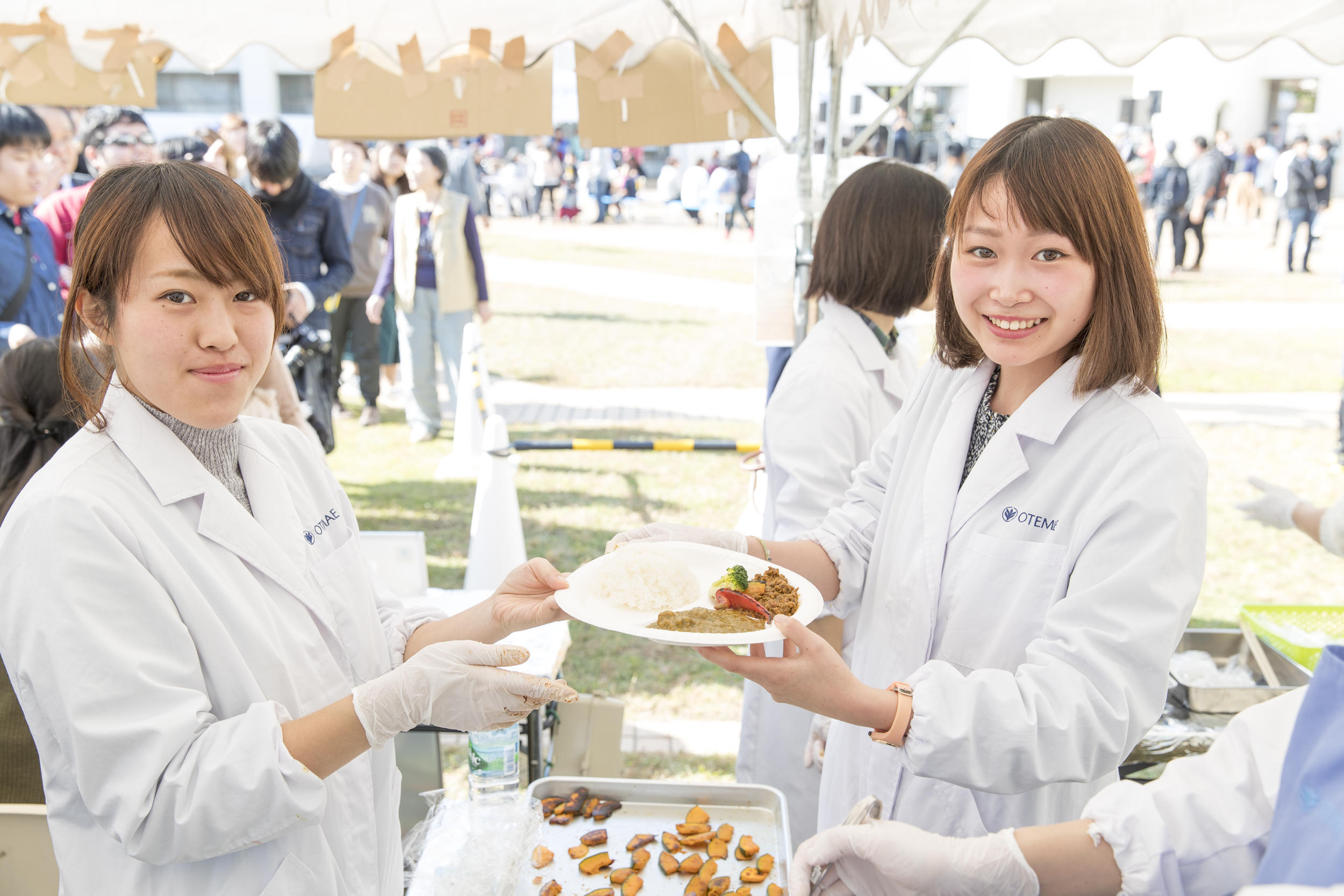 2016年に開設した大手前大学健康栄養学部では、開設年度より学生たちが「大手前カレー研究会」を立ち上げ、活動を続けています。学生が持つ健康と栄養の知識と、日本人の国民食であるカレーの可能性をかけ合わせた「おいしくて体にいい日本一のカレー」をめざし、日々、研究を続けており、食品メーカーと共同でレトルトカレーを製造するなど、活動は盛んに続いています。