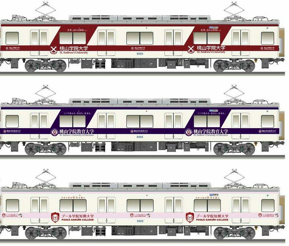 <桃山学院大学・桃山学院教育大学・プール学院短期大学 ラッピング電車の運行>