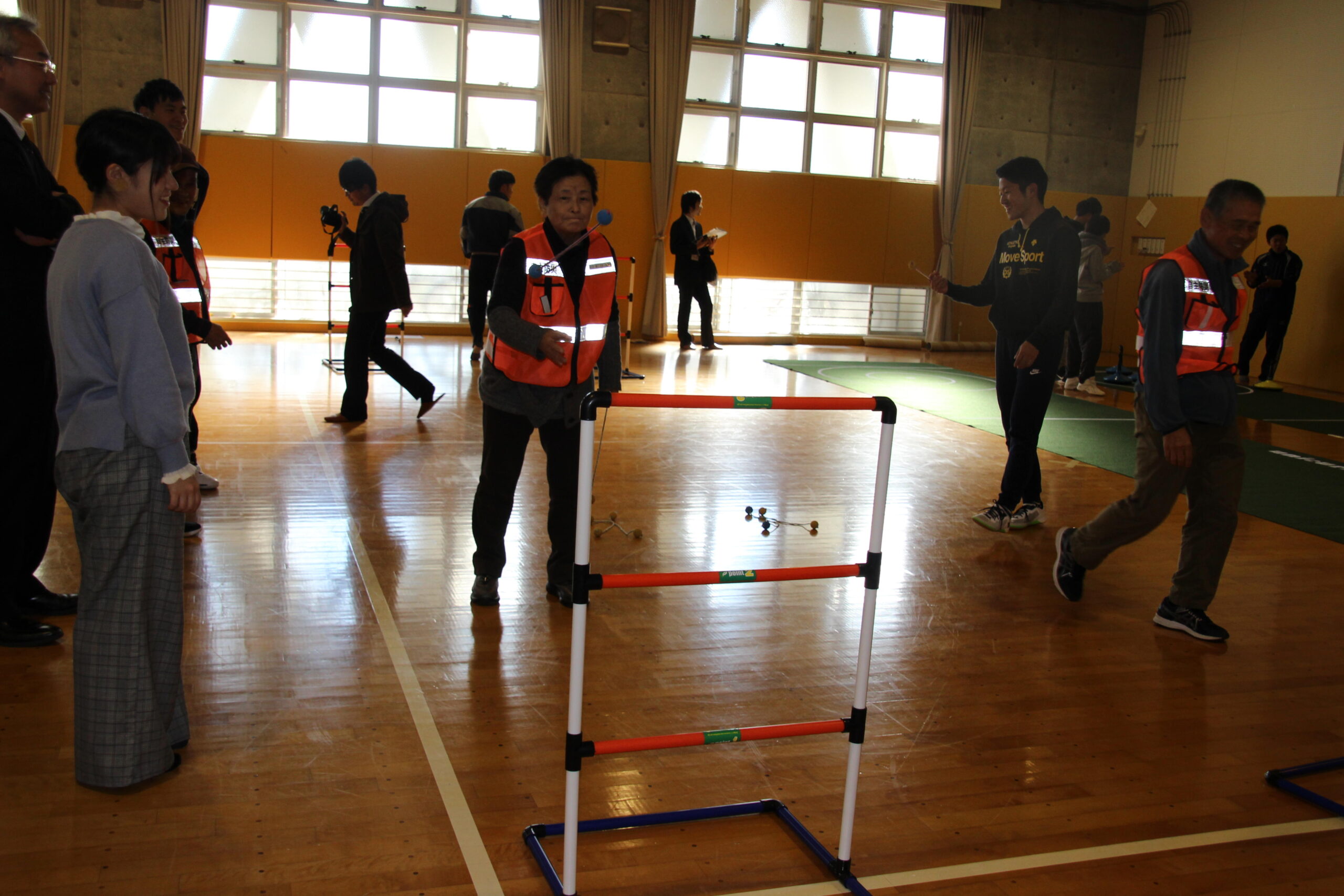 レクリエーションでは、カーリングを手軽に楽しめるよう開発されたスウェーデン発祥のスポーツである「ユニカール」や、日本レクリエーション協会が開発した「ラダーゲッター」を体験した。避難時にレクリエーションを行うことは、心のケアのほか、エコノミークラス症候群対策にもなるという。