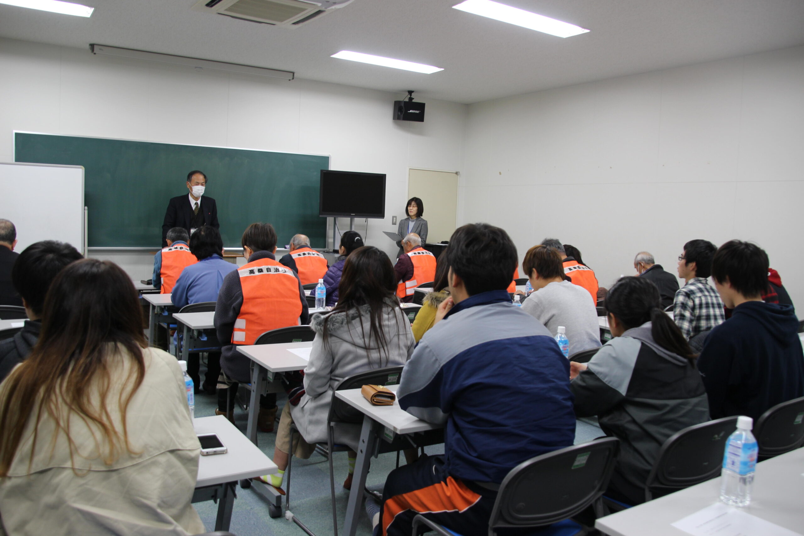今回の訓練は、災害時に避難場所として総合体育館を開放し、地域の住民の方が避難したケースを想定して行われた。
