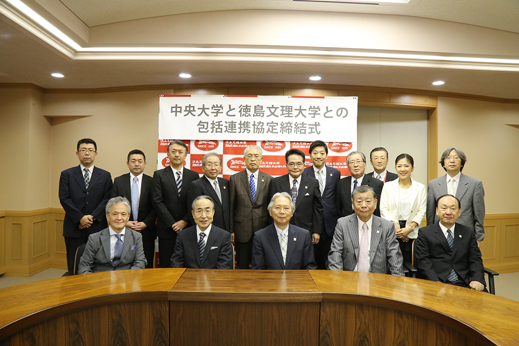 2017年7月5日(水)、徳島文理大学徳島キャンパスで、徳島文理大学と中央大学(東京都八王子市)との包括連携協定の締結式を行った。