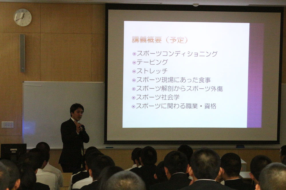 本郷助教は今後、「スポーツコンディショニング」「テーピング」「ストレッチ」などについて講義する予定となっている。