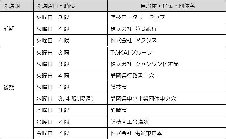 2017年度 静岡産業大学「冠講座」 — 新たに株式会社アクシスの講座を開講