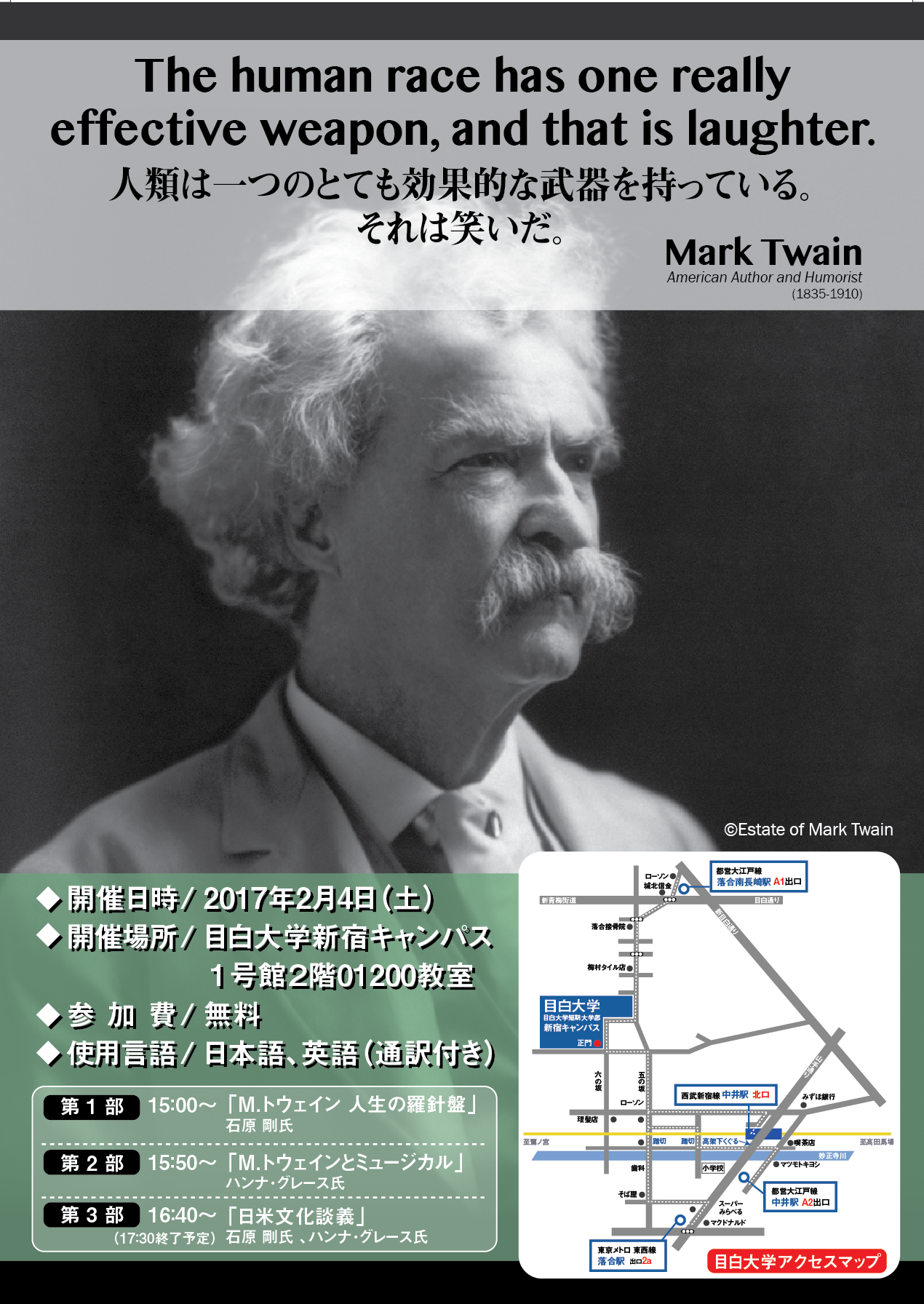 ◆目白大学 外国語学部 英米語学科 主催シンポジウム「マーク・トウェインを通して見る日米文化」