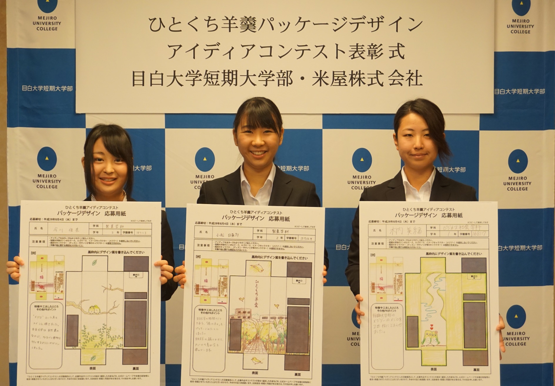 日本の大学・短大で唯一の製菓学科を設置する目白大学短期大学部は、老舗の和菓子店である米屋株式会社と平成27年3月、産学連携による相互発展等を目的として包括連携協定を締結。コラボ商品の開発等、連携をますます強めている。その一環として、今年6月、同社の定番商品「ひとくち羊羹」のパッケージをデザインする「ひとくち羊羹パッケージデザイン アイディアコンテスト」を共催した。