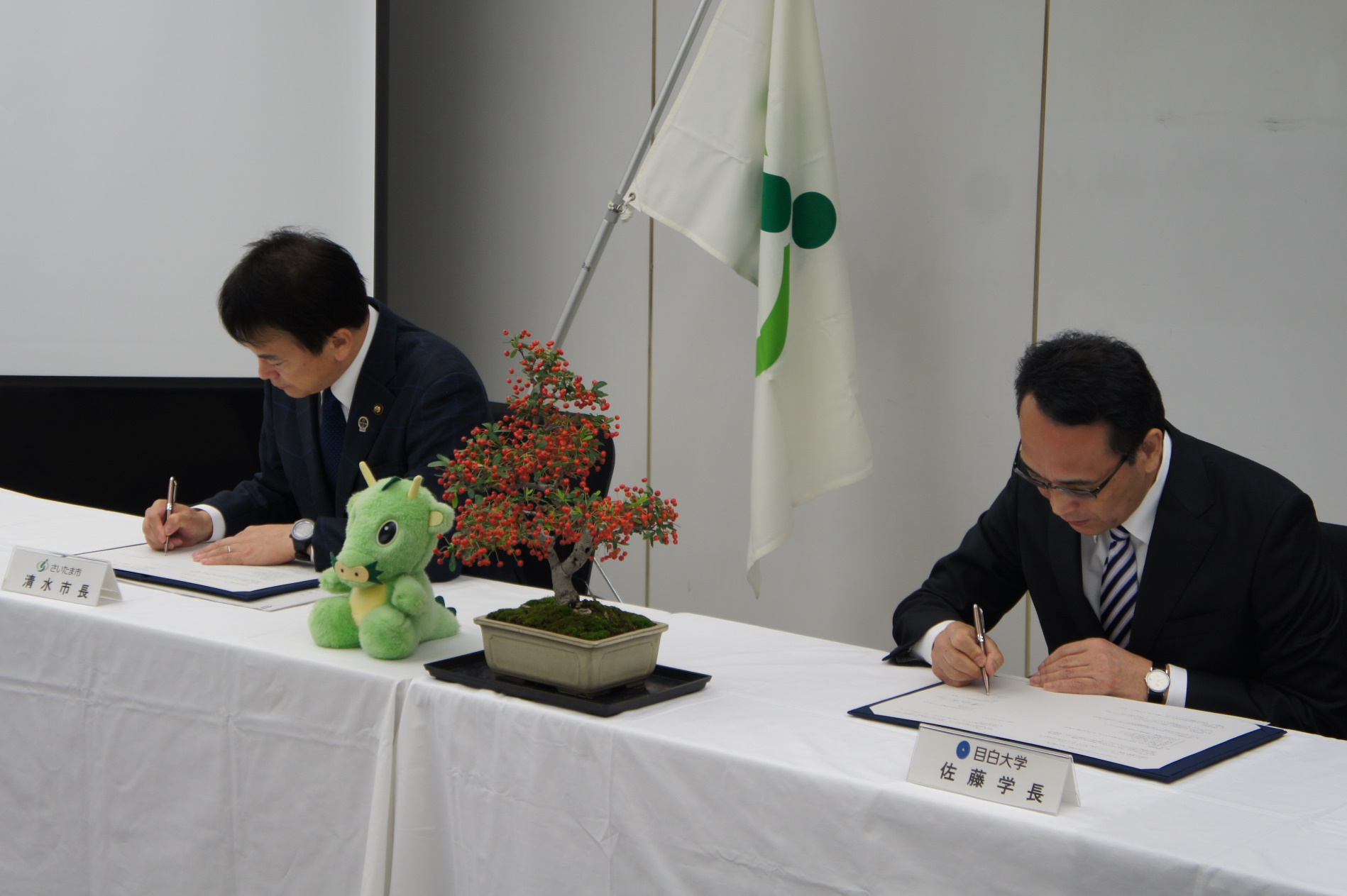 目白大学と埼玉県さいたま市は、相互の協力と連携により、地域の課題に迅速かつ適切に対応し、活力のある個性豊かな地域社会の形成・発展及び学術の振興に寄与することを目的として、包括連携協定を締結。10月28日(金)には、さいたま市役所において、佐藤郡衛目白大学学長および清水勇人さいたま市長、双方関係者の出席のもと協定書の調印式が執り行われた。