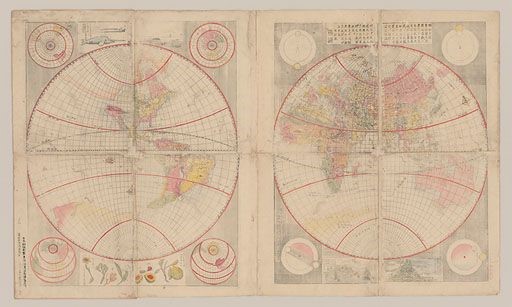 オランダをはじめとしたヨーロッパ諸国から伝わった世界地図を翻訳・模写することで作成した世界地図。2つの円で地球図を描いた「両半球図」も多くみられ、内容もより緻密で正確なものが多い。