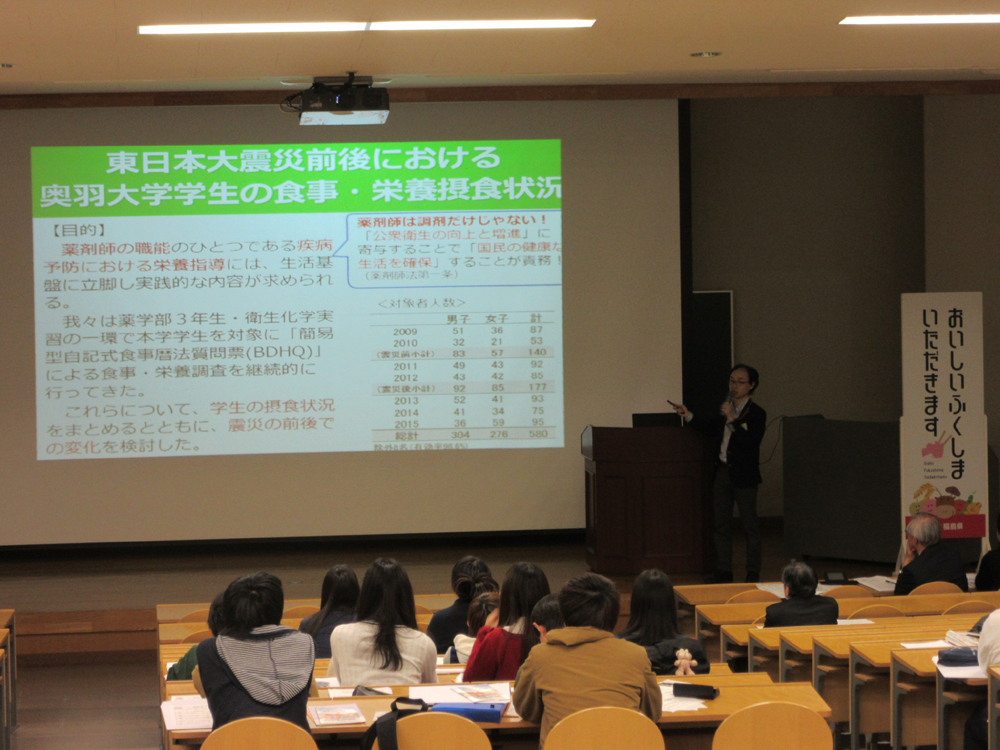 「東日本大震災前後における奥羽大学学生の食事・栄養調査について」:熊本隆之氏(奥羽大学薬学部 衛生化学分野・助教)