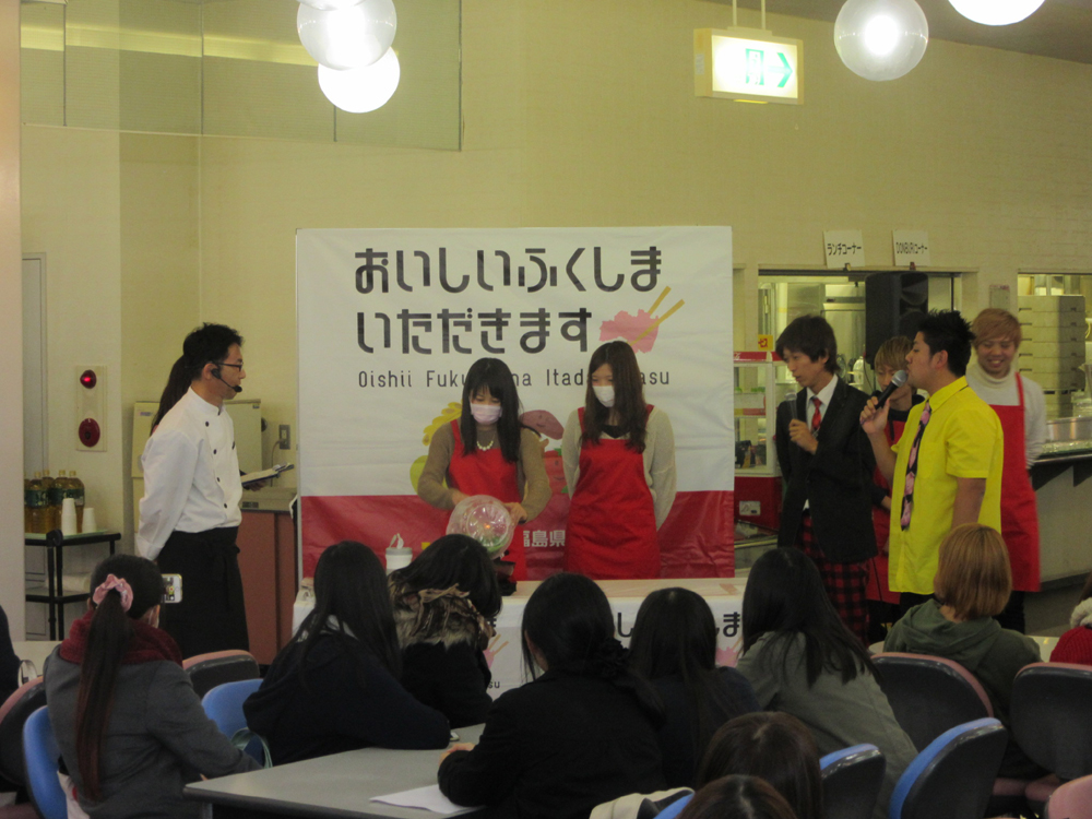 同大では野菜ソムリエや地元の料理人、東北大学の教員らを招き、講演会や料理の実演、試食を実施。参加した学生らは「福島県の農産物に関する知識」「放射性物質に関する正しい知識」「福島県で実施している安全性の確保の取り組み」などについて理解を深めた。