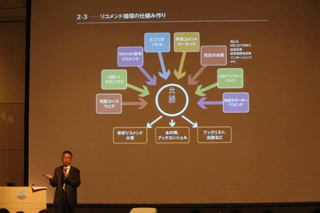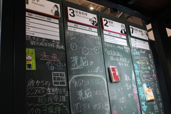 帝京大学メディアライブラリーセンター(MELIC)は、株式会社編集工学研究所と共同で取り組んでいる読書推進プロジェクト「共読ライブラリー」に関する出展を行った。「共読」とは、本を「読み合い、薦め合い、評し合う」、従来の自己完結型で終わらない新たな読書スタイル。出展ブースでは、実際にMELICで使用している「黒板本棚」「MONDOストリート」を設置し、学生や職員の手書きリコメンデーションを再現した。
