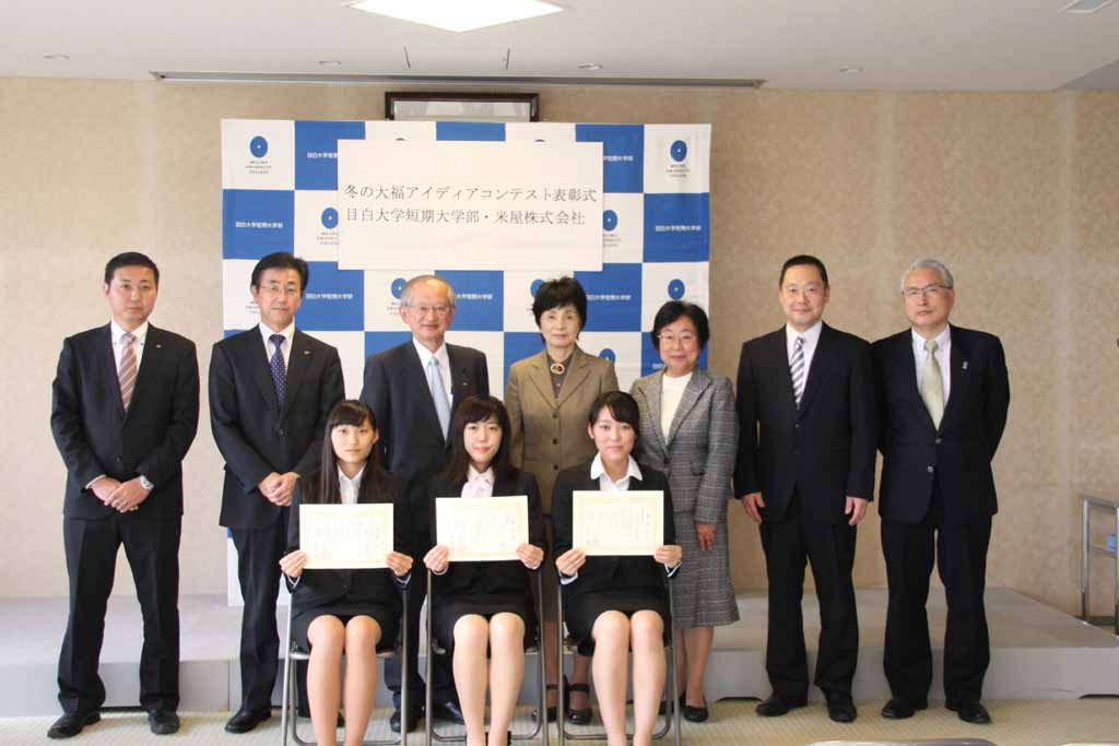 厳正な審査の結果、優秀賞、準優秀賞、なごみ賞の商品化が決定。11月11日に同短大部で表彰式が開催され、3名の学生に表彰状と記念品が贈呈された。