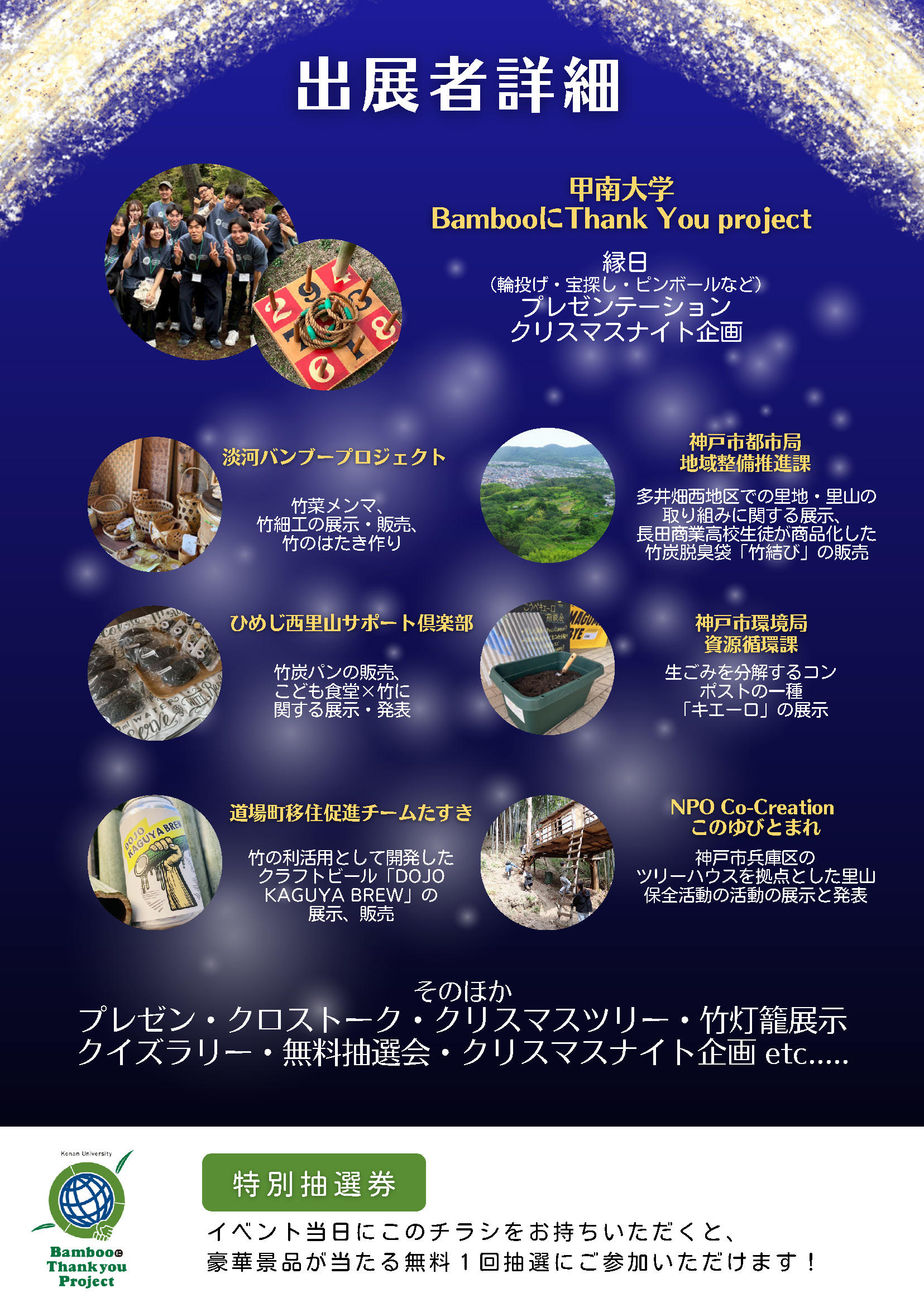 甲南大学が12月21日に第2回「BambooにThank youマルシェ」を三宮の東遊園地で開催 ― 竹の利活用や里山に関する展示・販売、縁日企画、クリスマス企画等を実施