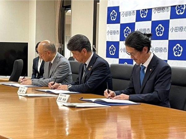 小田原市・小田原医師会・常葉大学の三者で『健康増進環境の質向上に向けた医療・地域連携モデル共創事業』に関する連携協定締結式が行われました。