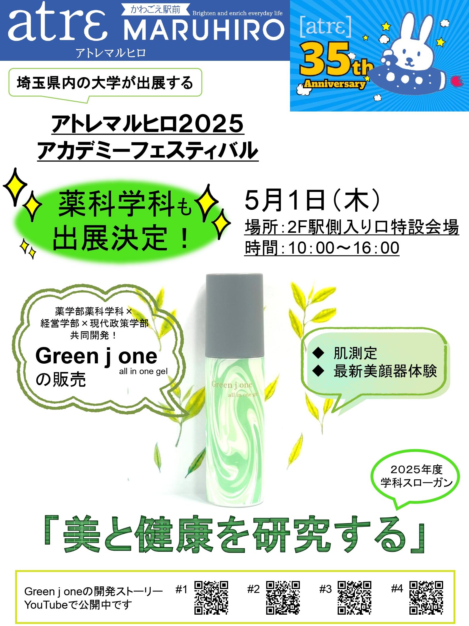 1年間を通した授業の中で、それぞれの学部の専門性を活かし、さまざまな分野の知識や技術を融合させることにより、オリジナル化粧品「Green j one(グリーン ジェイ ワン)」が完成しました。