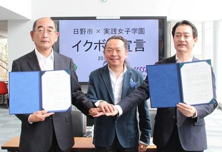女性と男性があらゆる分野でともに参画できる環境づくりを目指す日野市と、男女共同参画社会の実現をミッションとして推進する実践女子学園の、両トップみずから“イクボス(になる)宣言”を同時に行い、行政(日野市)と教育機関(実践女子学園)からの共同発表による相乗効果で、率先して実施していく姿勢を積極的に示し、日野市民の働く環境改善への波及、さらに広く社会にメッセージを伝えたいとの想いから実現したもの。