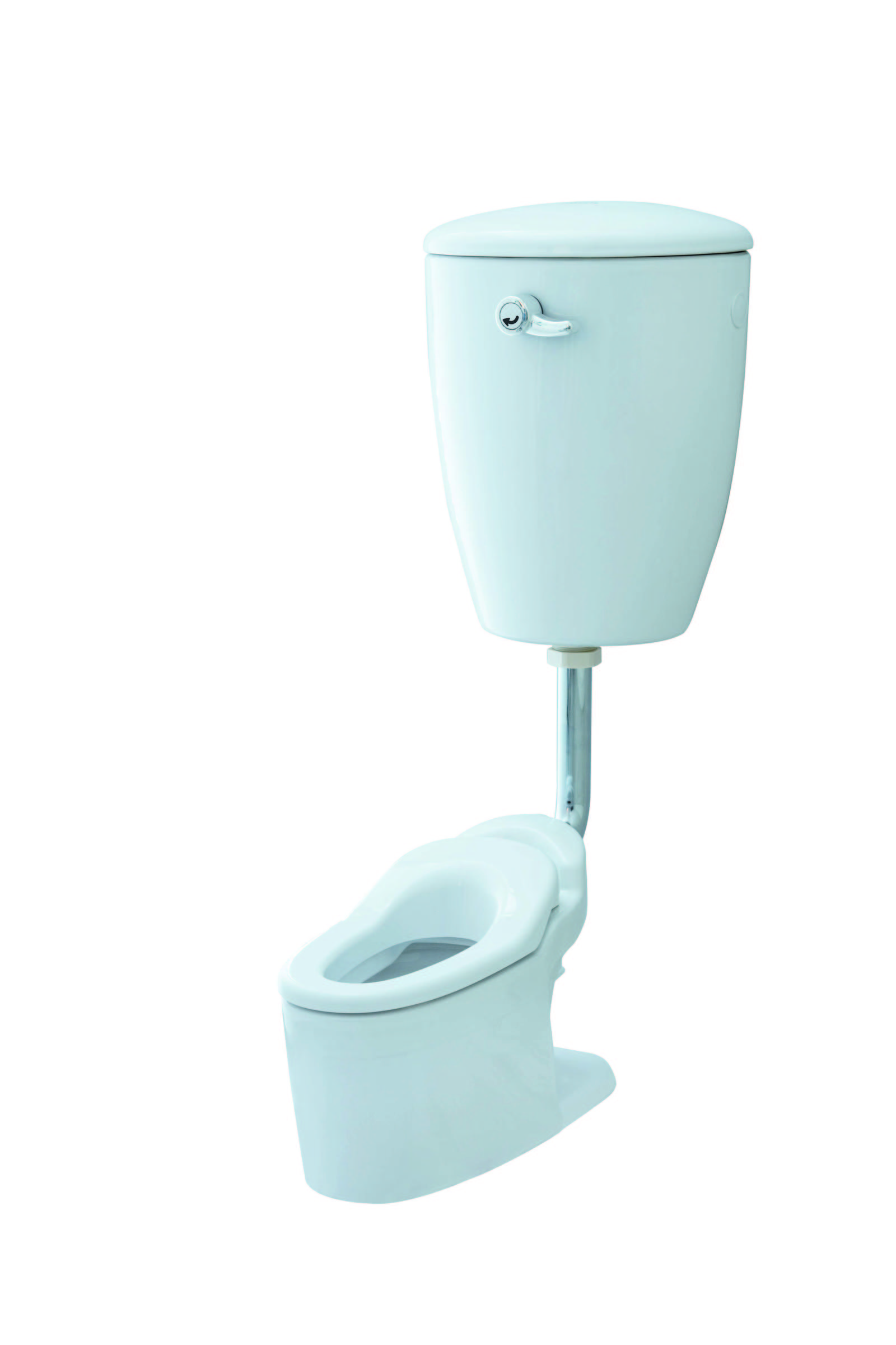 タンク+レバータンクは便器のデザインと合うように、ソフトな丸みを持った優しいデザインです。レバーは見やすい正面に付け、子供の指が引っ掛かりやすいRラインとしました。少しユニークな形が子供の興味を引きつけ、操作を促すようにしています。