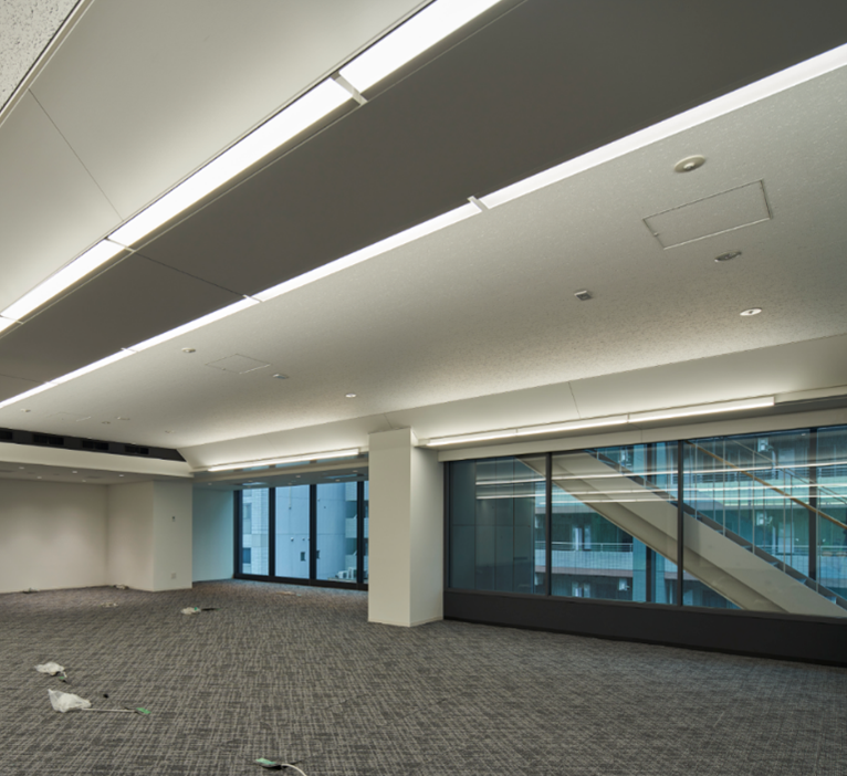 本ビルには『変風量コアンダ空調システム』に加えて『ダイナミックレンジ放射空調システム』が導入され、同じくダクトレス空調として、天井高さを効率的に確保できます。