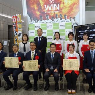 甲南女子大学 人間科学部 生活環境学科 濵口ゼミ(食生活分野)が実施する「和食文化継承プログラム」の活動が、 農林水産省近畿農政局「プレミア関西 食の『わ』プログラム」に選出され、2025年4月22日(火)に開催された「関西 食の『わ』マルシェ!」にて表彰されました。