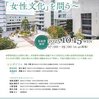 昭和女子大学 (学長 金尾朗:東京都世田谷区)女性文化研究所は、研究所設立40周年に際し記念シンポジウム「北京+30の現在、「女性文化」を問う」を10月15日(水)に開催します。(参加費無料・要申込)
