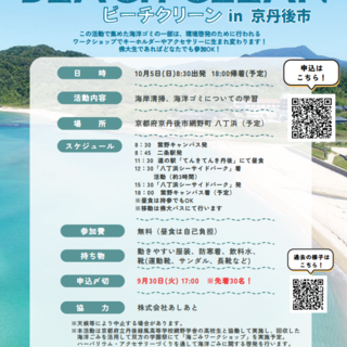 佛教大学(京都市北区)は、学生が地域の方々と協働し、海洋ごみ問題について学び・考える機会として、10月5日(日)に京丹後市網野町の八丁浜においてビーチクリーン活動を実施いたします。清掃活動にあたっては京丹後市網野町在住でビーチクリーンに取り組まれている八隅 孝治氏(株式会社あしあと代表取締役)にご協力いただきます。