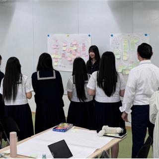 新たな記念祭を創るべく今年は、生徒・教職員・保護者が一堂に会したワークショップから始まりました。まずは「なぜやるのか(WHY)」の目的を深く理解し、共通認識を築いたうえで 「どう実現するか(HOW)」「何をするか(WHAT)」 へと段階的に落とし込み、目的 → 手段 → 提供内容の順に合意を重ねました。ブレインストーミングは何度も繰り返し、相手の意見を受け入れて上乗せする "YES, AND"(肯定してさらに足す)を運用し、そこで生まれた「地域と一緒に記念祭を作りたい」「生徒の活動を社会に広げたい」という声を起点に、地域商店街とのコラボレーションが誕生しました。