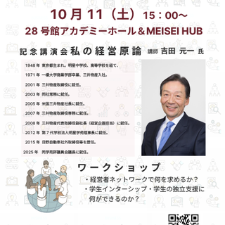 このネットワークの設立を記念し、2025年10月11日(土)に発足式を開催いたします。本ネットワークの発足式では、卒業生経営者による交流の様子や、大学と地域との新たな連携の可能性をご覧いただけます。ぜひ、取材にお越しいただき、明星大学の新たな取り組みをご紹介いただければ幸いです。