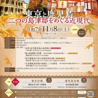 清泉女子大学(東京都品川区)は11月8日(土)、鹿児島大学(鹿児島県鹿児島市)との共同シンポジウム「東京と鹿児島 二つの島津邸をめぐる近現代」を開催する。現在は清泉女子大学の本館として使用されている、建築家のジョサイア・コンドルが手掛けた本邸と、鹿児島市の磯にあった本邸というふたつの島津邸を通して、島津家の歴史や同家に関わった人々、島津家の行った事業などについて考察するとともに、多くの鹿児島出身者が活躍の舞台とした東京と鹿児島の繋がりについて考え、将来を展望する。東京会場(清泉女子大学)・鹿児島会場(尚古集成館)の2会場とオンラインで実施予定。また、清泉女子大学では本館見学ツアーを、鹿児島では城下町まち歩きツアーを行う。一般参加も可能、参加無料(定員:東京会場200名、鹿児島会場25名)。要申し込み(各ツアーは先着順)。