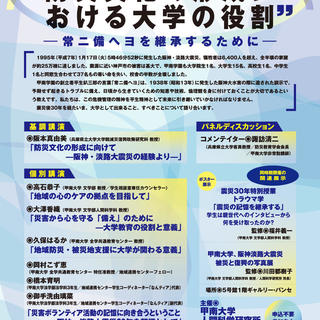 震災後30年を経た今年開催するシンポジウムでは、講演やパネルディスカッションを通して、大学として出来ること、すべきことについて語り合います。概要は下記の通りです。
