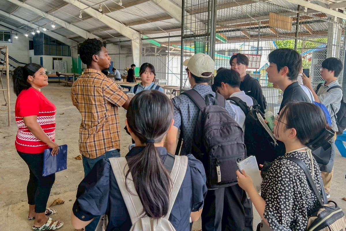 パラオ唯一の高等教育機関、パラオコミュニティカレッジ(PCC)では、まず関係者と面会し、両大学の概要説明を行い、弘前大学の学生の質問にPCCから回答。その後、PCCの学生ガイドによるキャンパスツアーでは、溶接を学ぶ作業場や農学の研究室、図書館や寮など、さまざまな施設を案内され、日本とは異なる教育環境に触れました。