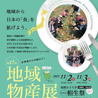 相模女子大学・相模女子大学短期大学部(所在地:神奈川県相模原市南区、学長:田畑雅英、以下「相模女子大学」)は、2025年11月2日・3日に開催する学園祭「第56回相生祭」にて、全国12自治体と7企業が参加する「第17回地域物産展」を実施します。学生が地域と協働し、商品開発・伝統文化の継承・復興支援などに取り組んできた成果を、物産展を通じて地域に発信します。