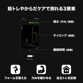 ・できること(価値): 筋活動をその場で可視化・記録、アプリでフィードバック