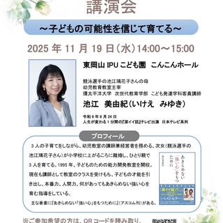 IPU・環太平洋大学(岡山市東区)では11月19日(水)、競泳の池江璃花子選手の母親である池江美由紀客員講師(同大次世代教育学部こども発達学科)による特別講演会「子どもの可能性を信じて育てること」を開催。池江客員講師が教育や子育ての現場で培った経験をもとに、学生向けに講演会①「逆境に負けない強い心を育てる」、保護者向けに講演会②「子どもの可能性を信じて育てる」および講演会③「挑戦を応援する子育て」の3つの講演を行い、子どもの成長を支えるヒントを語る。会場は講演によって異なり、講演会②と講演会③は一般参加も可能(要事前予約)。