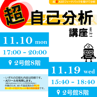・今回は2024年度から開始した本講座をバージョンアップし、①自分自身での自己分析、②受講生同士での他己分析、③AIを活用したAI自己分析を組み合わせ、従来の自己分析に加え、他者視点とAI視点を掛け合わせることで、多面的な自己理解を促進する。