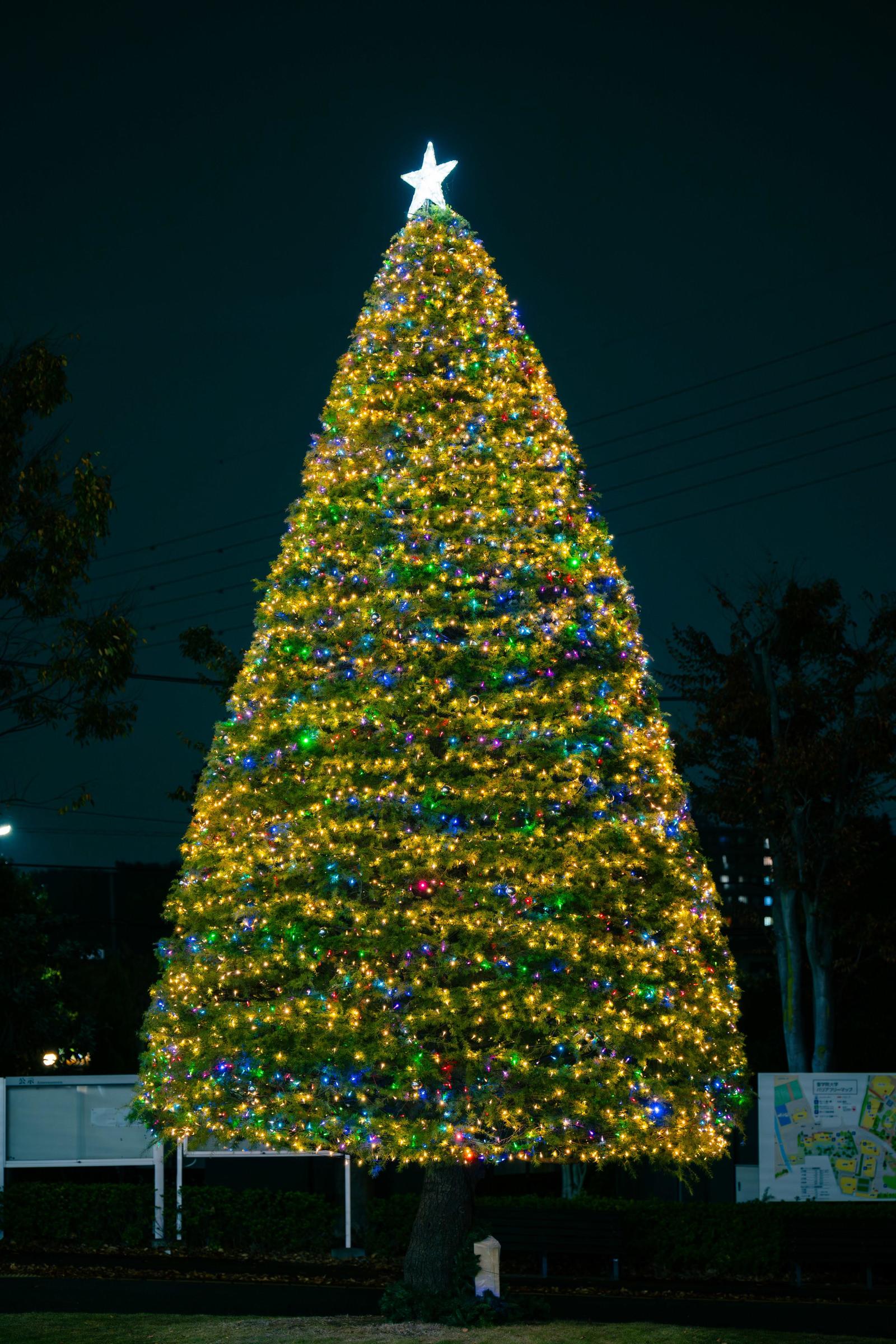 クリスマスイルミネーション:図書館前の大ツリーと「光の小径」のライトアップ