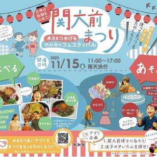 このたび関大前商店会実行委員会が主催、吹田市の後援を得て、地域と大学が協働する新たな地域イベント「関大前まつり」を11月15日(土)11:00から関大前通り(※一部区間通行規制)で初開催します。関西大学も参画する本イベントは、地域活性化や地域防災・福祉の機運向上を目的としています。