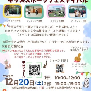 甲南大学(神戸市東灘区)は12月20日(土)、六甲アイランド総合体育施設において「キッズスポーツフェスティバル2025」を開催します。この取り組みは小学生を対象とした、さまざまなスポーツを体験可能なイベント。当日は体育会の学生とともに、野球やサッカーのほか、ふだんは触れる機会が少ないものまで、全18種類の競技に挑戦できます。開催は第1部(10:00~12:00)と第2部(13:00~15:00)に分かれ、事前予約制(各部ごとに予約、各先着250人)、参加費は無料です。