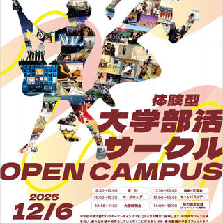 今回の「体験型 部活・サークルOPEN CAMPUS」は、普段なかなか見ることのできない"学び以外の大学生活"を体験しながら、入学前に先輩学生や同じ志を持つ仲間とつながり、春からの新しい大学生活をより具体的に思い描ける一日となります。