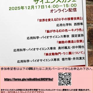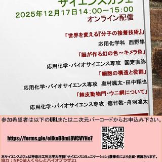 2025年12月17日、神奈川工科大学(厚木市下荻野1030)の大学院生が、バイオサイエンスをテーマに、研究内容を分かりやすく解説するオンラインイベントを開催します。