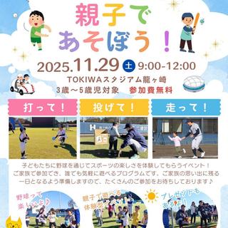 流通経済大学硬式野球部は、地域連携・地域貢献活動の一環として、未就学児(3~5歳児)とその家族を対象にした体験型の野球振興イベント「親子であそぼう!」を、2025年11月29日(土)に、TOKIWAスタジアム龍ケ崎(茨城県龍ヶ崎市)で開催します。