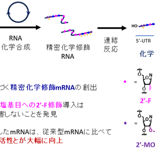 第二に、「完全化学合成による位置特異的修飾mRNA作製技術」は、これまでの酵素合成法では不可能だった自由度の高い分子設計を可能にする革新的なプラットフォームです。これにより、mRNAの機能をさらに精密に制御したり、新たな機能を付与したりする研究が加速され、mRNA医薬の応用範囲が格段に広がることが期待されます。