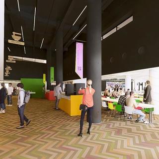 テラスダイニングコモンズは、6つの業態を展開するフードコートスタイルの学生食堂として、幅広いメニューを提供します。地元食材の積極的な活用や健康志向メニューの充実、さらにはフードロス削減の取り組みを通じて、キャンパス内外に「食」を入り口とした健康と文化の発信拠点を形成します。