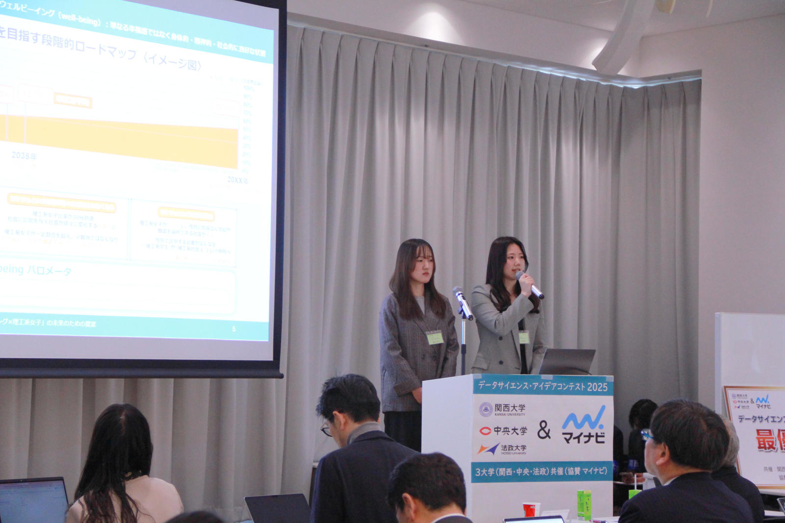 2025年11月22日(土)、法政大学(総長:Diana Khor)、関西大学(学長:高橋智幸)、中央大学(学長:河合久)の3大学は、株式会社マイナビ(代表取締役 社長執行役員:土屋芳明、以下 マイナビ)の協賛により、関西大学梅田キャンパスにて「3大学共催データサイエンス・アイデアコンテスト2025(協賛マイナビ)」の最終選考会を開催しました。