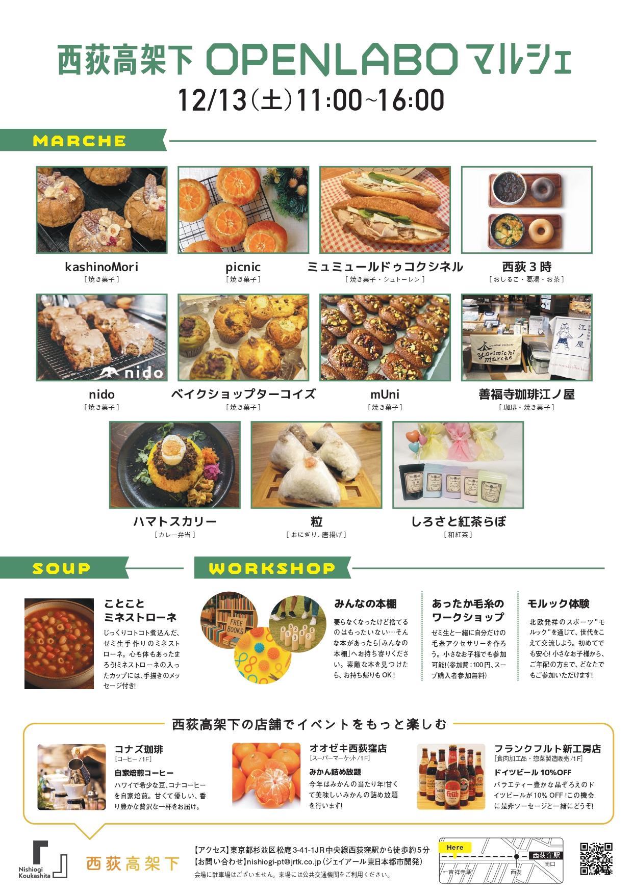 2024年度より学校法人東京女子大学と株式会社ジェイアール東日本都市開発は、産学連携協定のもと、「西荻高架下」を拠点に地域課題の解決をめざす実践型プログラムを実施しています。学生が地域との協働を通じて、まちづくりの現場で仮説検証を行い、課題発見・提案力を養います。このたび、産学連携の一環として、「西荻高架下 OPEN LABO マルシェ」を開催いたします。