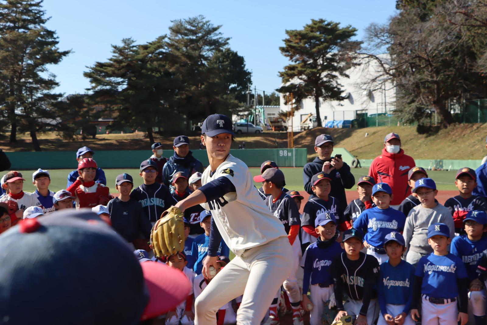 小学生ならではのエネルギーを感じましたし、野球を楽しむという大切なことを教えてもらいました。今日参加してくれた小学生の中にもプロを目指す子がいっぱいいると思うのでその子たちがプロに来るまで現役でプレーしていたいと思います。