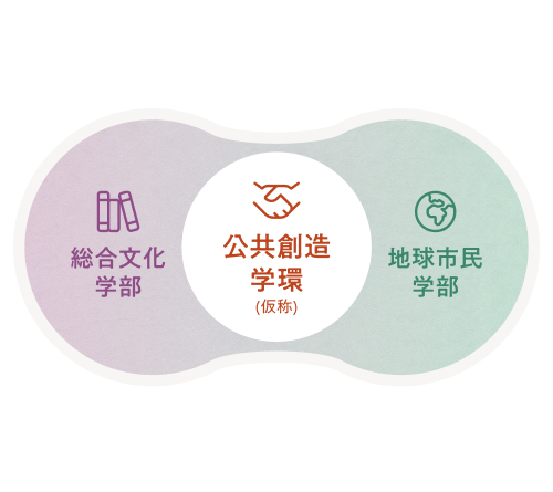 このたび設置予定の公共創造学環では、学生が自治体や企業、市民団体等に協働を提案し、公共の創造を実践する。