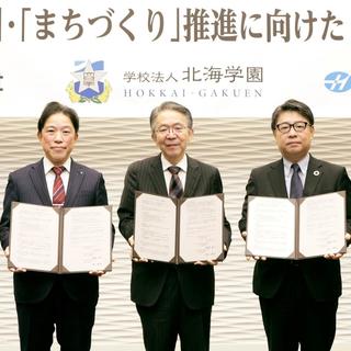 北海学園大学などを運営する学校法人北海学園(札幌市豊平区、理事長:安酸敏眞)は12月10日、株式会社北海道新聞社(代表取締役社長:堀井友二)および株式会社北洋銀行(頭取:津山博恒)と「ひとづくり」・「まちづくり」推進に向けた連携協定を締結した。