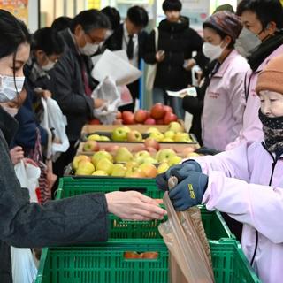 弘前大学(青森県弘前市/学長:福田眞作)は12月12日、同大の学生や教職員、また、一般市民に向けてりんごの販売を行いました。これは、同大農学生命科学部附属藤崎農場産のりんごを周知するために行われたもので、定番品種の「ふじ」をはじめ、弘大育成品種の「こうこう」「きみと」を、育成に携わった教職員が自ら販売。学生限定商品として、りんご3品種が入った1袋100円の詰め合わせ商品も販売し、会場は大いに賑わいました。