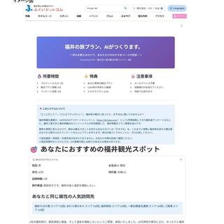 福井工業大学AI&IoTセンター(センター長:芥子育雄教授)は、福井県観光DXコンソーシアムと連携し、過去4年間に蓄積された観光客アンケートデータを活用したAI旅行プラン提案システム「福を招く福井観光計画エンジン」(略称:エフティー)の一般公開実証実験を2025年12月22日より開始します。