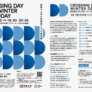 MEISEI CROSSING BASEが提供している各種の起業支援プログラムに参加した学生起業家たちの活動成果を紹介します。専門相談員によるメンタリングを通してビジネスをブラッシュアップした学生起業家や、自治体や地域事業者の課題に対して新たな事業の提案をした学生チームなどが、その成果を発表します。