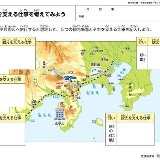 ⑴ 「地図帳の観光読み」+「観光の花びらワーク」